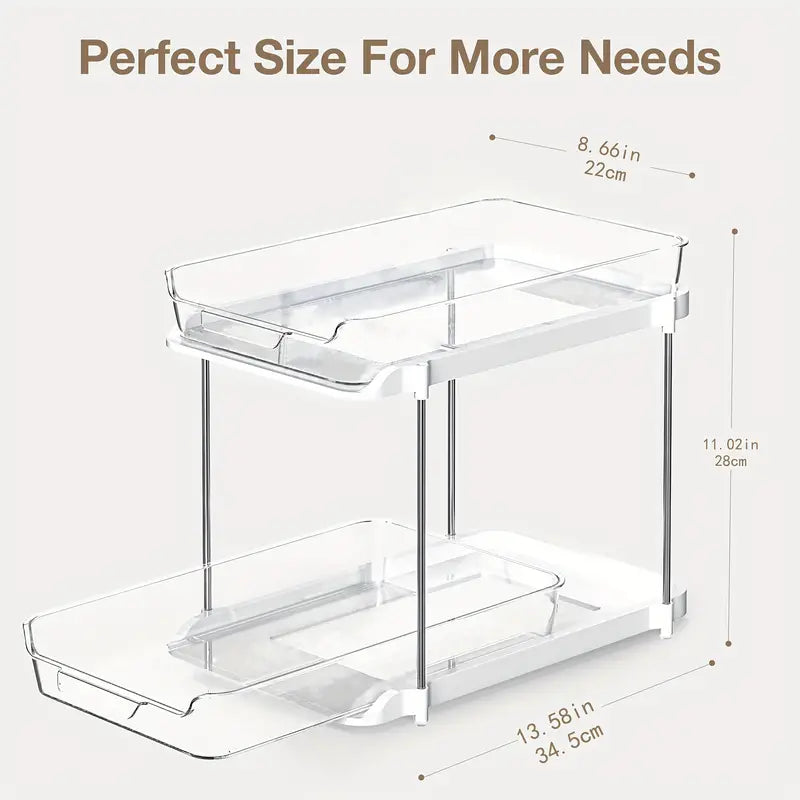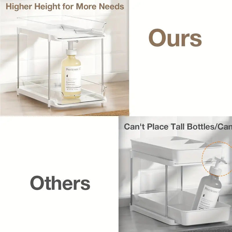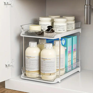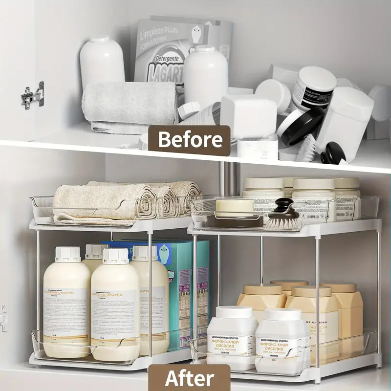 Transformez l’espace sous votre évier avec notre organiseur coulissant à double couche, conçu pour maximiser le rangement de façon élégante et fonctionnelle. Découvrez tous ses atouts :